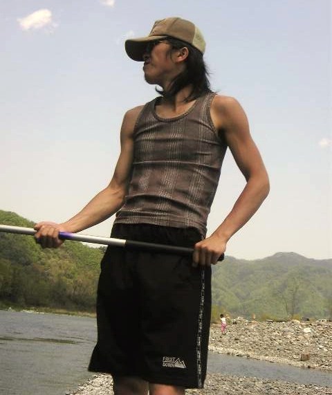 川の中で網でばしゃばしゃだもん。